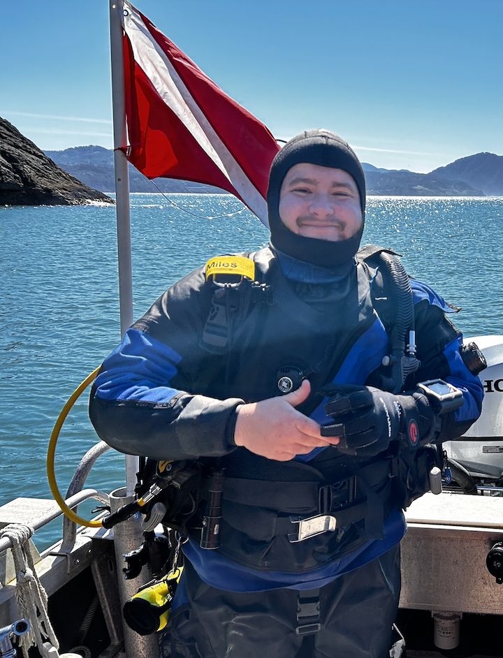Miles Rough is a Ph.D. student at the Oregon Institute of Marine Biology in the laboratory of Dr. Aaron Galloway. Miles is fascinated by kelp forest dynamics, particularly the shifts between healthy ecosystems and urchin-dominated barrens. He uses field and laboratory experiments to understand the role of sunflower sea stars as a key predator influencing urchin populations and ecosystem stability. Miles is an AAUS scientific diver and SCUBA instructor, using diving both to conduct research and to train others in underwater observation techniques. He earned his B.S. in Biology with a focus on Marine Biology from Oregon State University in 2024.